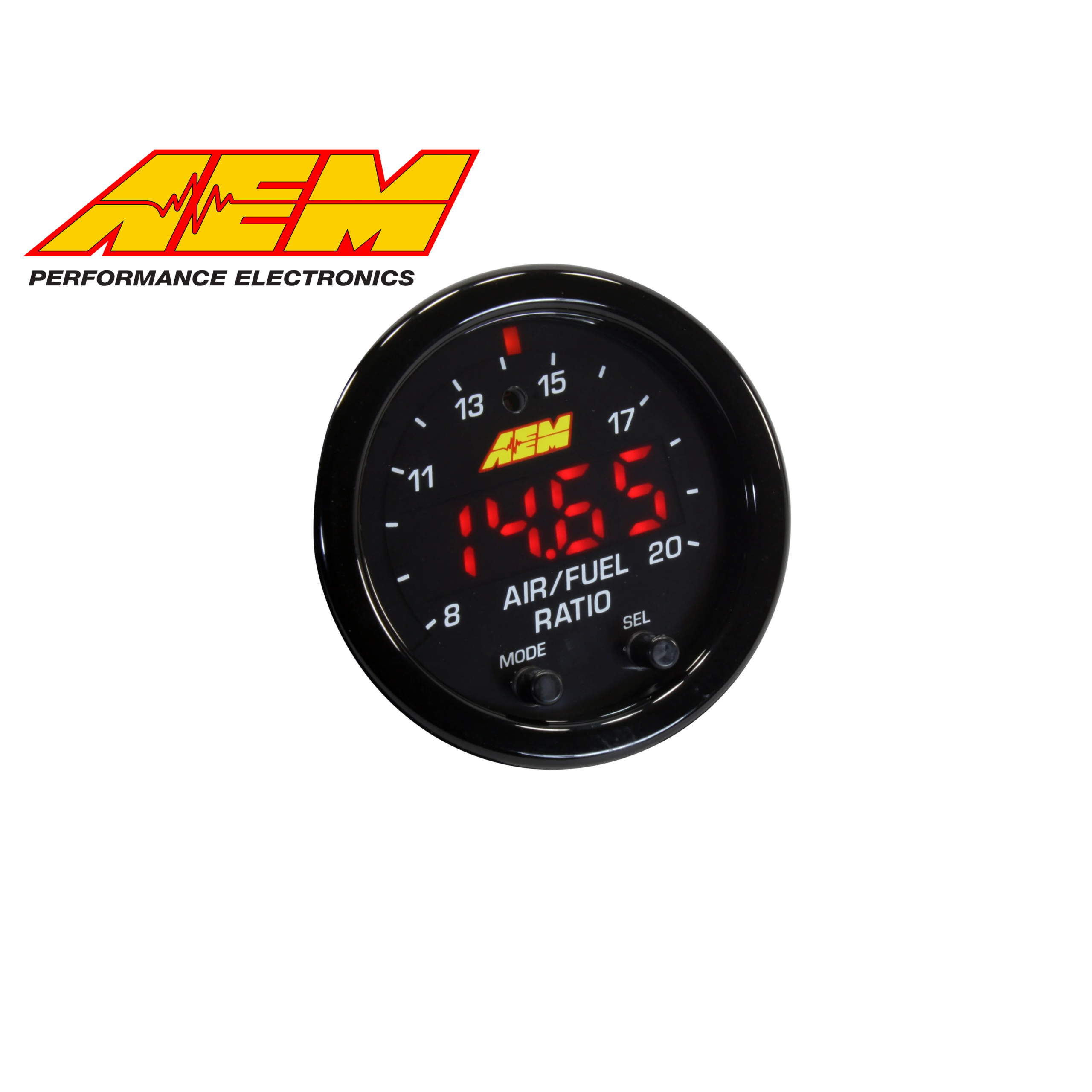 AEM's X-Series Wideband UEGO Air/Fuel Ratio Sensor Controller Gauges are built upon unique, patented 100% Digital technology (Patent 9,575,030) that makes them the fastest responding wideband air/fuel ratio controllers in independent testing*. The X-Series Wideband UEGO AFR Sensor Controller Gauge (PN AEM 30-0300) measures 2 1/16th-inch (52mm) in diameter and features a modern, visually striking faceplate and new seven-segment center display that is 87% larger than the 30-4110 AEM Wideband Gauge's center display. This creates the perception of a larger overall gauge, but in a common 52mm size for easy mounting. Its slim depth (less than one inch overall) and ultra-slim cup depth of .200-inches dramatically increases its application base and potential mounting locations.