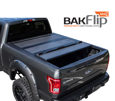 The BAKFlip MX4 If you are looking for a Ford F-150 Raptor hard folding tonneau cover that literally does it all, the BAKFlip MX4 from BAK Industries is it. From its sleek contemporary styling to its state of the art function, the BAKFlip MX4 hard folding heavy-duty truck bed cover has been enhanced with a premium density foam core, upgraded latch housing components, and an all-new integrated tailgate seal that allows the tailgate to be closed with the cover up or down. Made in the USA!