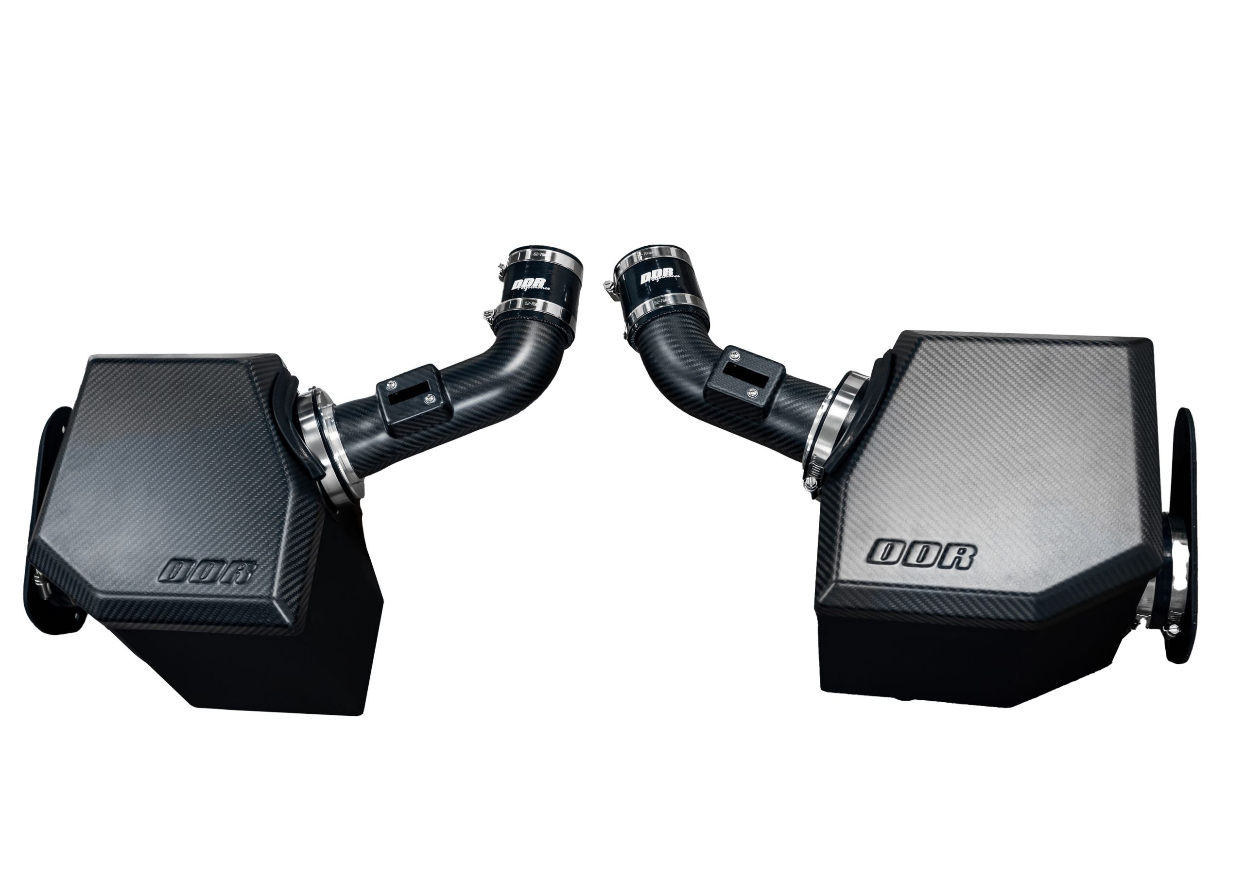 To reduce heat absorption, or heat-soaking, we’ve powder-coated all the air boxes (heat shields) which reduces heat absorption by about 20% across the board, and the carbon fiber alone will lose heat much quicker than conventional air intakes – which is a major plus! Who would want hot air sucked into their engine?