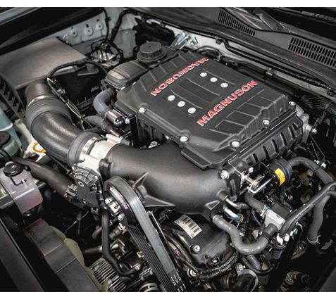 This system was developed to be a direct bolt on kit with minimal downtime, and straightforward installation. An enthusiast with basic tools can install the system in a weekend, or about a day for an experienced installer. In addition, a Magnuson calibration is included so the ‘tuning’ is already done for you. The TVS1900 also looks and fits like OEM, almost like it belongs there. With no cutting or welding, it’s also easily reverted to stock. The supercharger itself is maintenance free- pre-filled and sealed, nothing to check or top off for the lifetime of the engine.