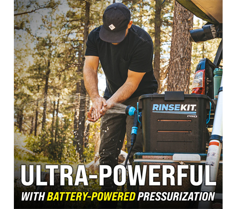 The 3.5 gallon PRO is our first battery-pressurized model, boasting a consistent, high pressure spray that lasts for up to 5 minutes. The battery pressurization is not only strong, but makes the PRO easy to use – simply pour water in the top fill cap, press the power button and spray! The PRO is perfect for avid surfers, campers, bikers and outdoor enthusiasts who want more capacity plus the consistency, strength and convenience of battery-powered pressurization.