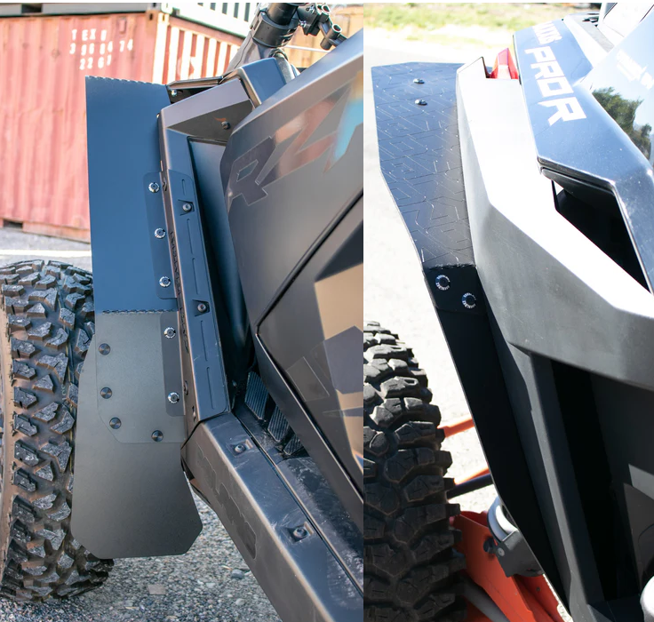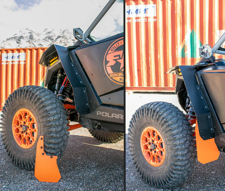 Each RokBlokz Mud Flap/Fender Extension set for the 2022+ Polaris RZR PRO R and TURBO R come with four (4) Fender flares and four (4) accent pieces that install onto the fender Flares provide your SXS machine with the ultimate coverage. Also included is our time tested stainless steel & rust-resistant mounting hardware and anodized aluminum dress washers, all necessary brackets and installation instructions.