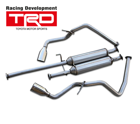 - Stainless steel, cat-back exhaust design with dual TRD logo-etched tips