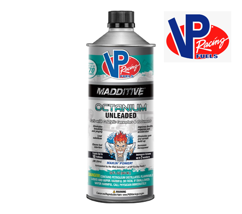 VP Racing Madditive Octanium Unleaded Concentrate is formulated to provide the biggest octane boost—up to 7 numbers, increasing horsepower. It is safe for use in cars and trucks with both catalytic converters and oxygen sensors. Octanium Unleaded eliminates knocking and pinging, cleans fuel injectors, eliminates gum and varnish build-up, and improves throttle response and acceleration.